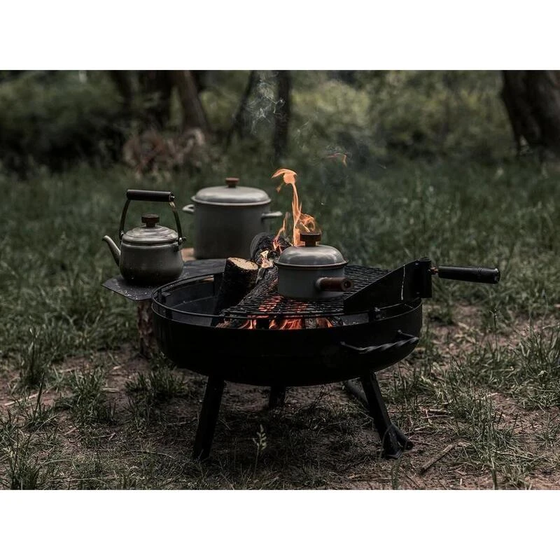 Le Grill Foyer Cowboy est un système de grillage compact parfait pour griller, cuire et faire du barbecue. Il sert également de pratique foyer !