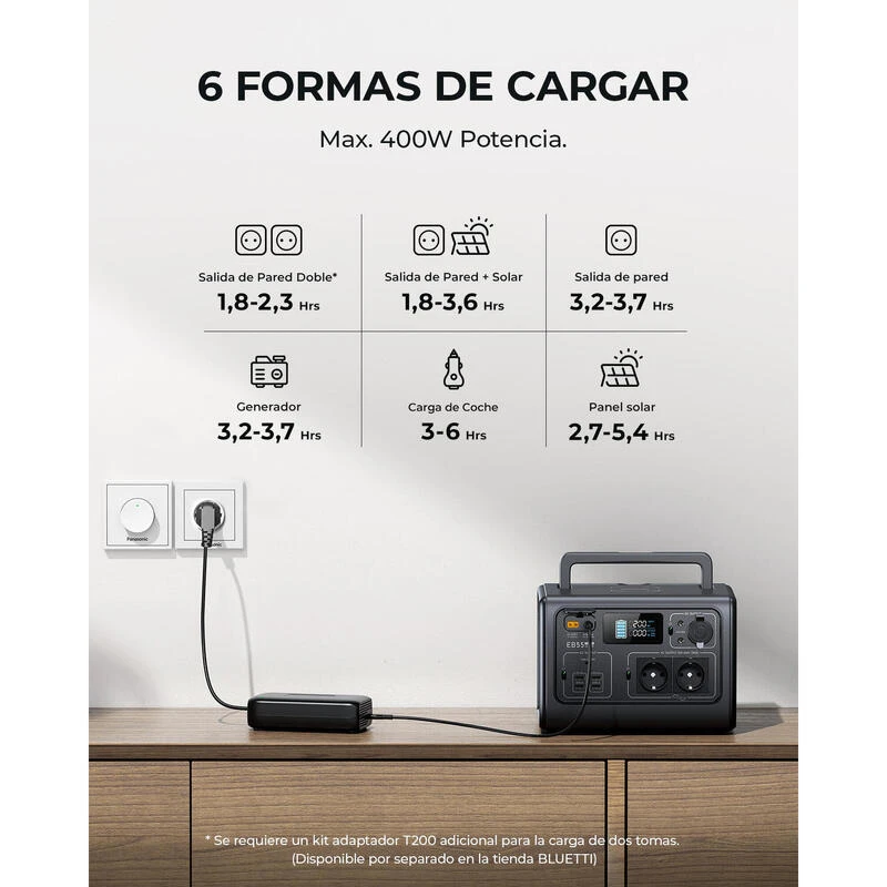 BLUETTI Générateur Solaire EB55 avec Panneau Solaire PV120S, Batterie LiFePO4 537Wh avec 2 Sorties 700W CA (1400W Crête), 100W Type-C, Station d’énergie Portable pour Camping, Voyage, Urgence