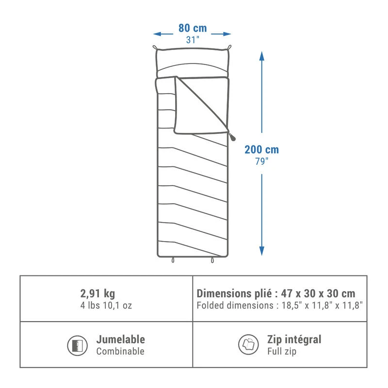 Quechua SAC DE COUCHAGE EN COTON POUR LE CAMPING – ARPENAZ 0° COTON