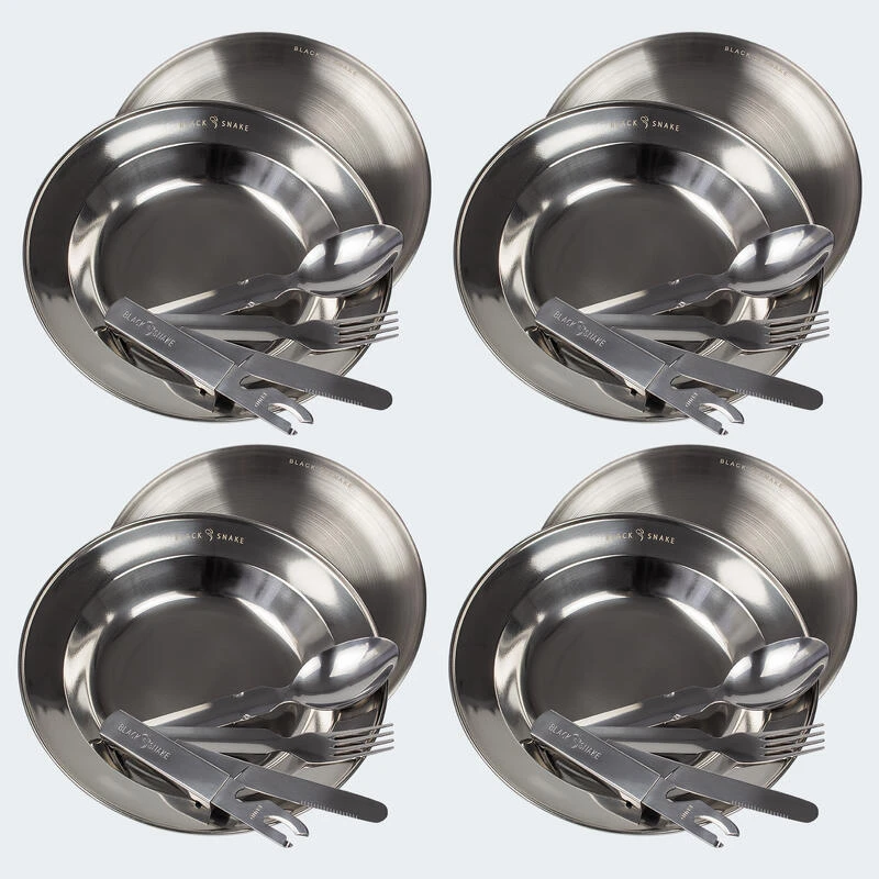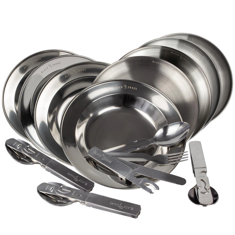 · couverts empilables: couteau, cuillère, fourchette et ouvre-boîte & ouvre-bouteille par set
